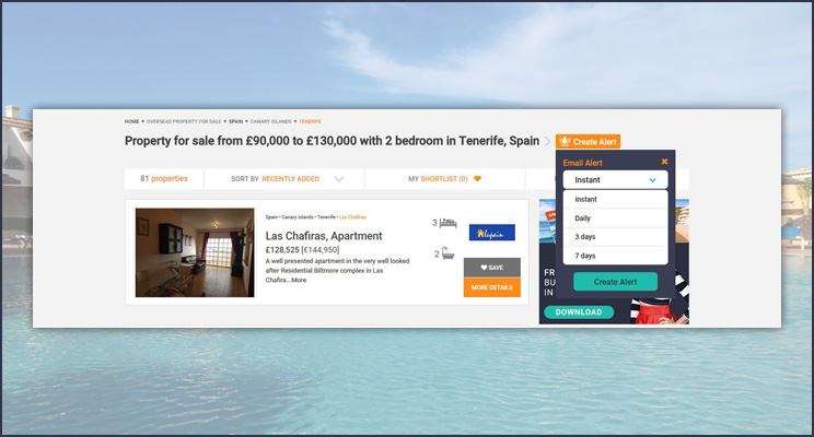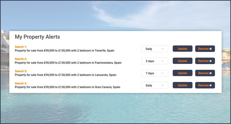 That's why we've introduced property alerts, which puts you in the driving seat whilst searching for your dream home abroad. Simply enter the country, region or town you're interested in, as well as your min/max budget and property type, sit back and have these delivered straight to your email inbox and access them at any time.