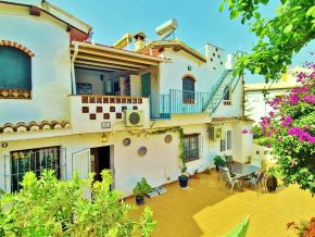Devant la propriété se trouvent des jardins avec un chemin donnant sur de belles vues. Cette zone de jardin fait partie de l'espace commun du hameau mais est utilisée et entretenue exclusivement par les propriétaires de cette propriété. Au-dessus, juste à côté du chemin, une entrée voûtée mène à la terrasse du jardin. Dès l'instant où l'on pénètre sur la terrasse, on ressent le charme et le caractère de cette propriété atypique. Dans les jardins se trouvent de magnifiques parterres de fleurs abritant une grande variété de plantes tropicales et à fleurs. Il y a également une zone semi-circulaire creusée dans la roche sur un côté, parfaite pour localiser une piscine hors sol ou une piscine construite. Autrefois il y avait ici une piscine (demandez-nous une photo).