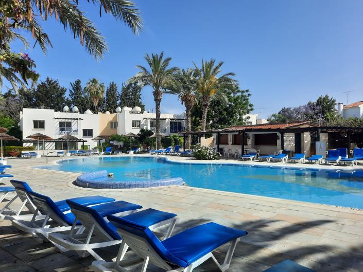 Spacious 2 bedroom top floor apartment in one of the most sought after areas of Kato-Paphos. Nestled within a hotel resort, Paphos Gardens, with a large pool area, pool bar and picturesque gardens.