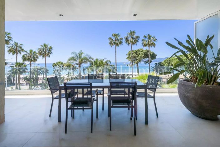Idéalement placé sur la Croisette, au sein d'une résidence dont la façade extérieure a été entièrement rénovée et modernisée, vaste appartement 4 chambres de 200 m² s'accompagnant d'une grande terrasse aménagée, offrant une magnifique vue sur la Mer et les plages.