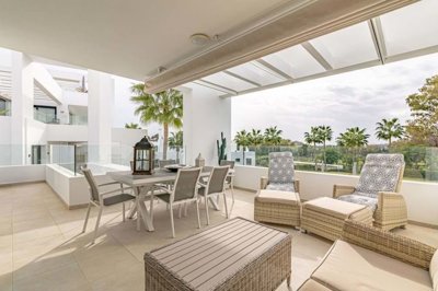 CE SUPERBE APPARTEMENT EST SITUÉ DANS LE DÉVELOPPEMENT EXCLUSIF DE LAS TERRAZAS DE ATALAYA À ESTEPONA, MALAGA. CONÇUE AVEC UNE ÉLÉGANCE MODERNE ET DES FINITIONS DE HAUTE QUALITÉ, LA PROPRIÉTÉ OFFRE UN ÉQUILIBRE PARFAIT ENTRE LUXE, CONFORT ET UN STYLE DE VIE PRIVILÉGIÉ AU BORD DU GOLF.