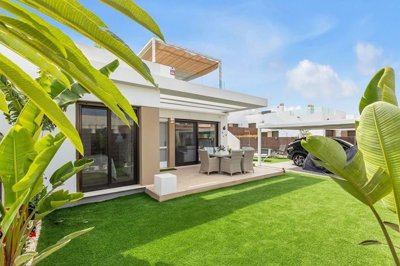 Modern furnished 2 bedroom villa with private pool, roof terrace & solar panels in Vistabella Golf. This 1-year-old semi-detached villa is sold fully furnished and ready to enjoy. Designed for convenience and comfort, the property is distributed across a single level and includes 2 spacious bedrooms (both with terrace access), 2 modern bathrooms, and a bright open-plan living and kitchen area. Large windows, mosquito blinds, and individually controlled air conditioning in every room ensure year-round comfort.