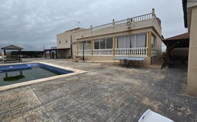 TWO INDEPENDENT HOUSES, ONE OF THEM HAS 3 BEDROOMS AND TWO BATHROOMS, ONE OF THEM EN SUITE, LIVING ROOM KITCHEN WITH HIGH CEILINGS, POOL AND GOOD BARBECUE, WITH A LARGE WOODEN ROOFING OF ABOUT 40 METERS FOR THE CARULOUS SUMMER EVENINGS, The other house is open plan downstairs with a bathroom and upstairs there is another floor with 3 bedrooms and above a solarium with spectacular views, Villa in La Marina area La Marina, 320 m. of surface, 2000 m. surface plot, 5000 m. from the beach, 2 double bedrooms and 4 single bedrooms, 4 bathrooms, renovated property, kitchen only furniture, white lacquered interior carpentry, stoneware flooring, aluminum / climalit exterior carpentry.