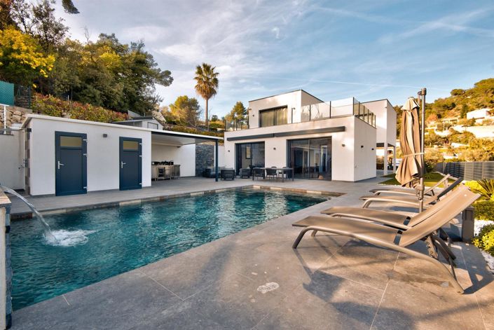 Coline De L'abadie Discover this magnificent 183m² villa built on a 1550m² plot, on 2 levels with a breathtaking view, a real coup de coeur, located in an idyllic and quiet setting. Offering top-of-the-range amenities, this villa features a private pool and jacuzzi, ideal for relaxing and enjoying sunny days. This 5-room villa offers generous floor space, a heated swimming pool with sun terrace and summer kitchen, 4 spacious bedrooms with storage, including a magnificent master bedroom with terrace, a modern, fully-equipped kitchen, a bright living room with large bay windows opening onto the outside, a landscaped, intimate garden, a garage and numerous parking spaces. Completely secure, it will seduce you with its comfort, style and exceptional location.